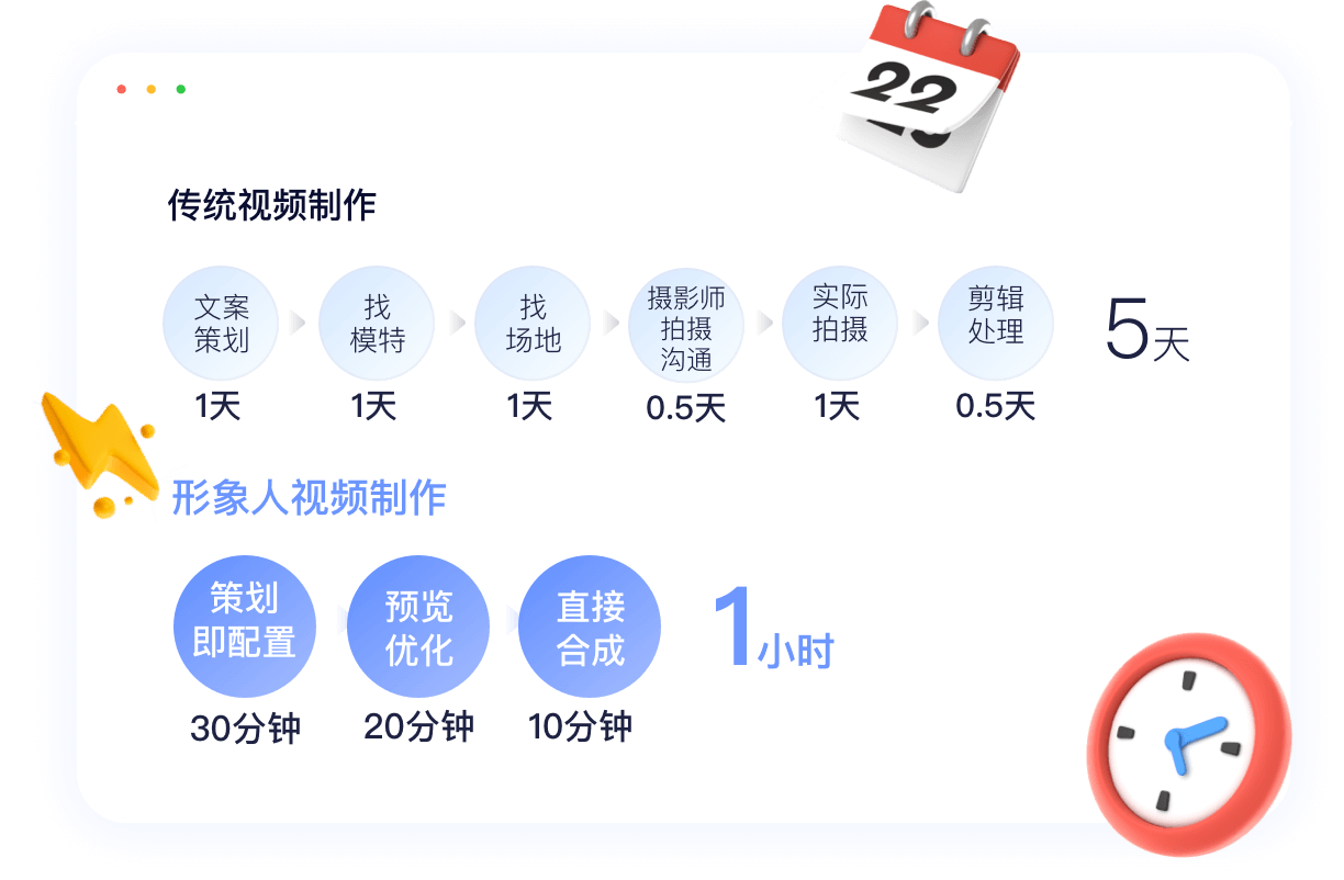 視頻制作只是一個要素選擇和搭配的過程,配置完畢即可快速合成。無需再找模特、找攝影師、找場地、花錢花時間去拍攝!