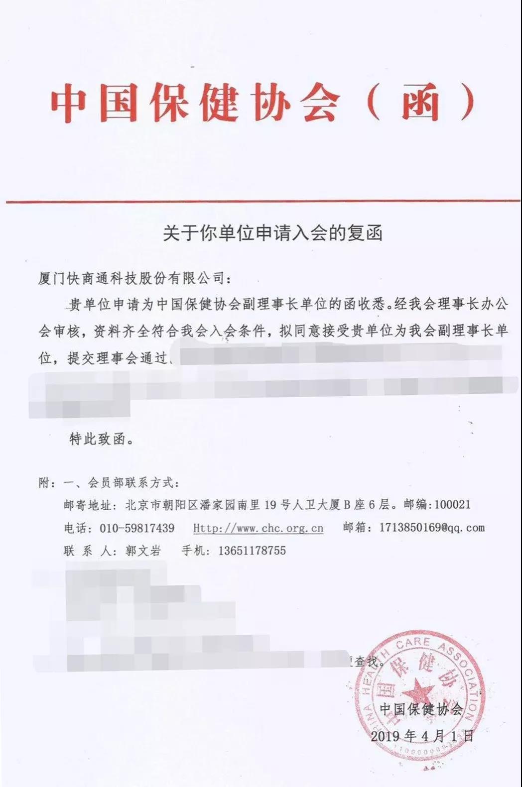喜報|祝賀快商通成為由國務院批準成立的中國保健協(xié)會副理事長單位