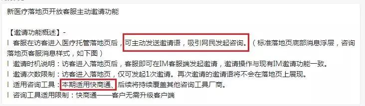 在強調(diào)消費升級的今天,客服不僅僅提供“解決問題”的售后服務(wù),更是將服務(wù)對象擴大到企業(yè)的意向用戶、潛在用戶,客服工作也由售后服務(wù)變?yōu)槭矍白稍儯杀粍拥慕獯鹱兂芍鲃拥膯栐儭6?span style="box-sizing: border-box; font-weight: 700;">客服主動邀請功能正是“主動問詢”最重要的一環(huán)。就好比實體店,客服導(dǎo)購,招攬客戶,主動出擊,變被動為主動。然而這么一項重要的功能,先前的百度新醫(yī)療規(guī)則卻告訴你: