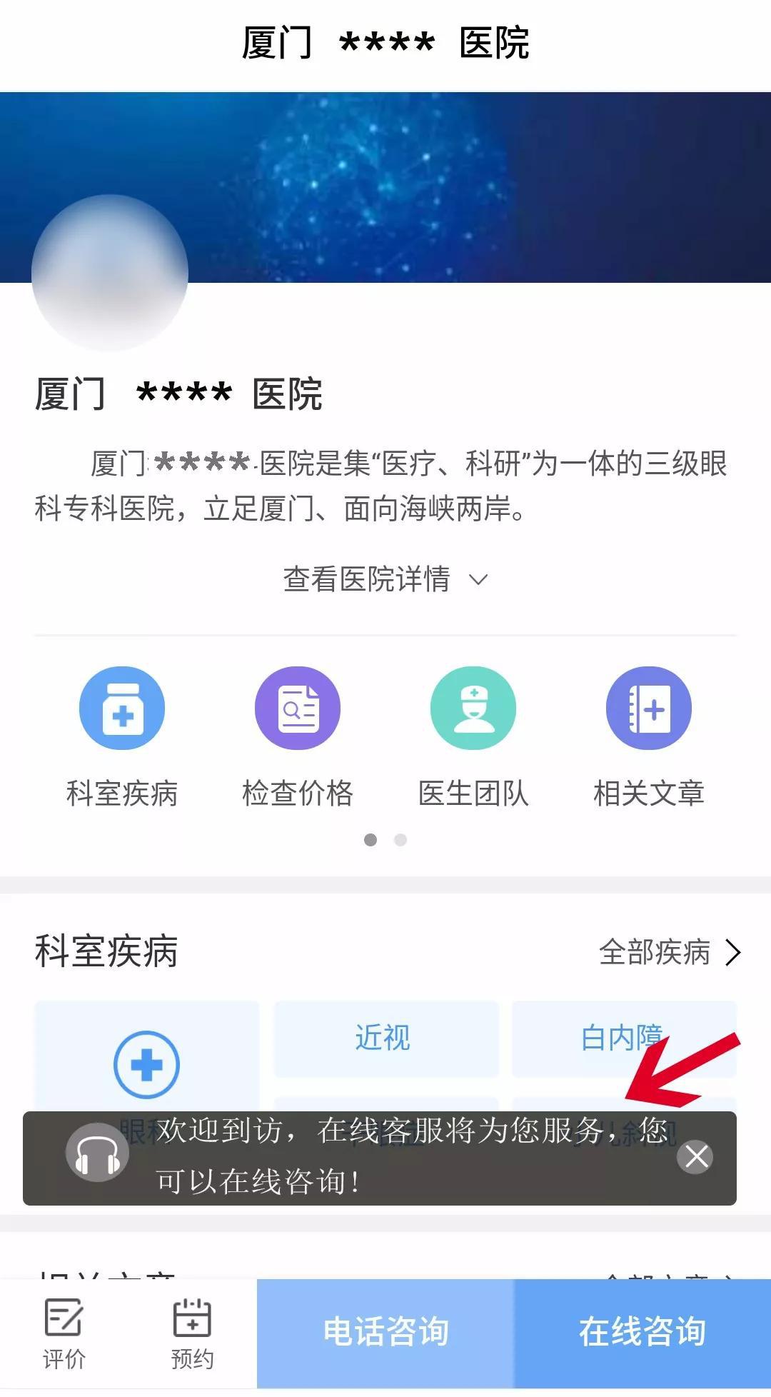 ▍客服在訪客進入醫(yī)療托管落地頁后,可主動發(fā)送邀請語,吸引網(wǎng)民發(fā)起咨詢。