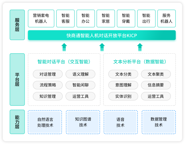 開放Kriston.AI 快商通領先的智能對話技術,助力企業與開發者0代碼創建“能聽懂、擅推理、會分析、懂決策”的智能對話機器人。