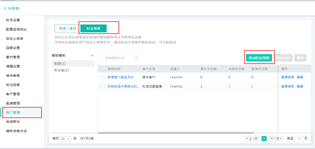 只要到智慧微客服后臺,進入【粉絲海報】模塊↓
