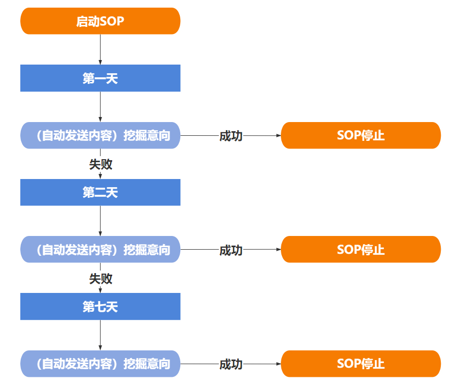 SOP在執行過程中如果客戶回復消息了,那么咨詢師立刻就知道她的需求,并且知道這個客戶是有意向的,并且根據她的需求再去執行這個對應的SOP流程,輕松轉化到院。如果SOP執行過程中客戶一直都沒回復消息,那么系統就會按照預先設定好的流程跑下去。
